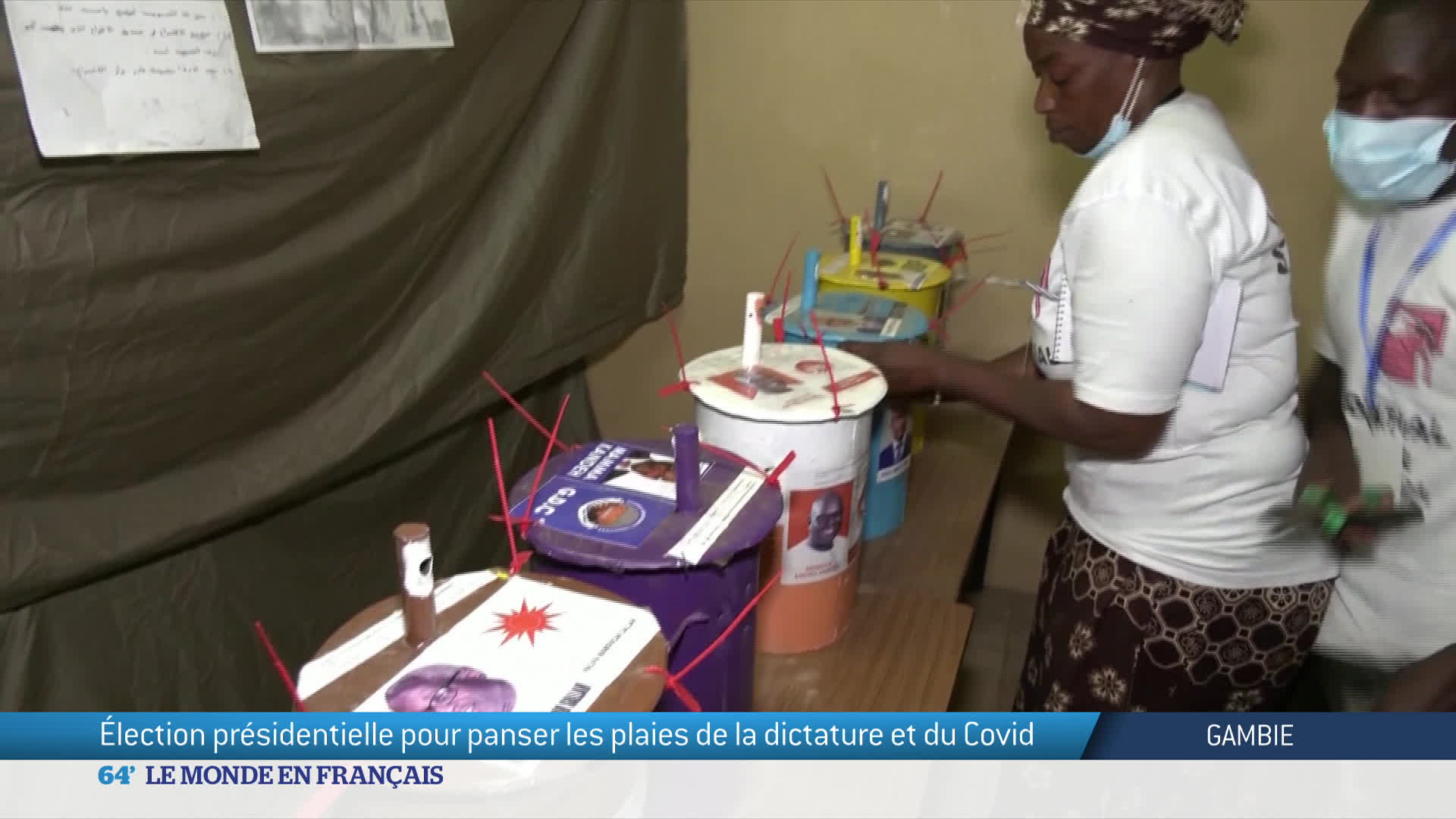 Pour voter, les électeurs déposent une bille dans un des bidons aux couleurs de chaque candidat. -